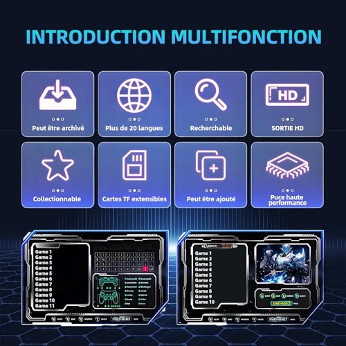 Sortie 4K HD & Console Multifonction : Cette console vidéo rétro prend en charge la sortie 4K Ultra HD. Connectez-la facilement à votre TV, moniteur ou projecteur pour des visuels époustouflants (vérifiez que votre écran dispose d’un port d’entrée HD). Elle propose une bibliothèque géante de jeux classiques, avec fonctions de sauvegarde de progression et de téléchargement de jeux supplémentaires. Adieu les défis répétitifs : plongez dans la joie pure du jeu rétro